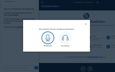 Bevor Sie den Raum betreten müssen Sie noch ihr Mikrofon aktivieren und testen.