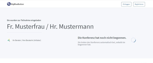 Falls Ihr/e Berater/in den Raum noch nicht aktiviert hat, gelangen Sie nun evtl. zunächst in eine Warteschleife,